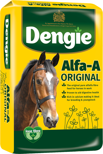 The original pure alfalfa fibre feed with a light molasses coating, providing quality natural nutrients for working horses and ponies. Key Features A high fibre feed providing 10MJ/kg of Digestible Energy, which is comparable to a cool mix or cube Made from pure alfalfa which is proven to aid digestive health and buffer acidity in the digestive tract Contains naturally occurring vitamins and minerals, rich in calcium, making it ideal for breeding and young stock How To Get The Most Out Of Feeding With Dengie Alfa-A. Original Alfa-A Original can be fed on its own or it can be combined with cubes or a mix for those horses with a higher energy requirement. If you are feeding Alfa-A Original as the sole feed, use a broad-spectrum vitamin and mineral supplement or balancer. Respiratory Care The alfalfa in Alfa-A Original is dried at a very high temperature to reduce the risk of mould. Efficient extraction processes ensure Alfa-A Original has a low dust content to promote a healthy respiratory system.