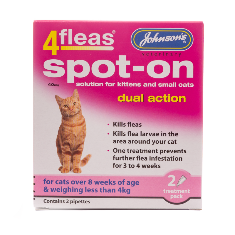 Johnsons: 4 Fleas Spot-on For Cats Under 4kg 2 Treatments