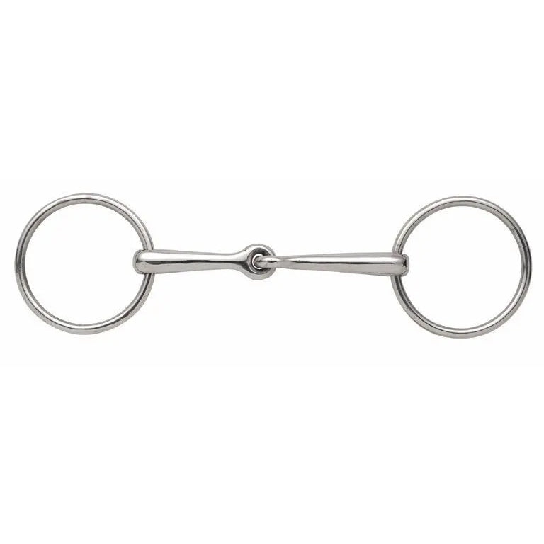 This is a basic jointed mouth snaffle with loose rings to allow more movement in the horse's mouth. Mouthpiece thickness: 13mm.