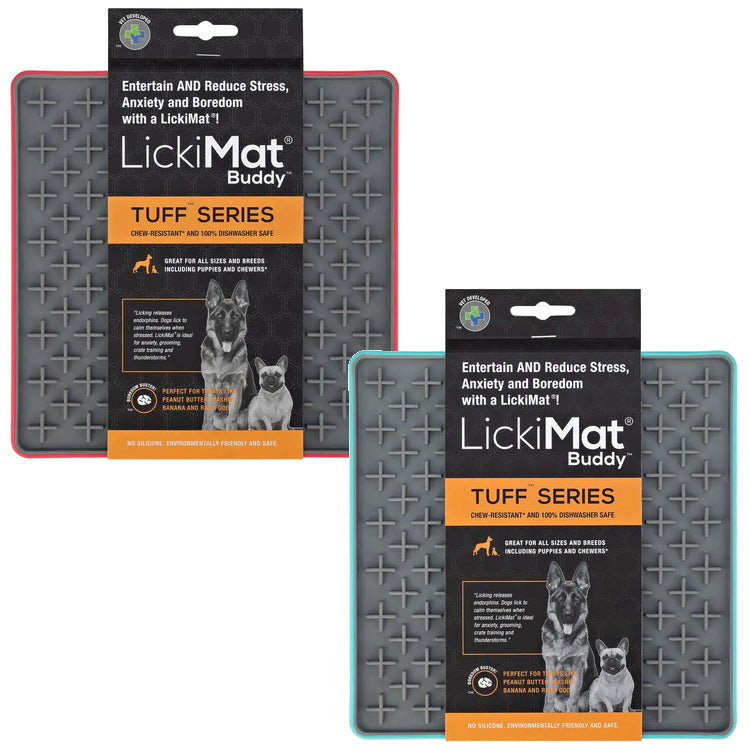 For fun pet interaction, three designs are available. Lickimat Buddy, with its cross maze design, is perfect for thick sticky treats like doggy peanut butter, wet food or soggy biscuits.