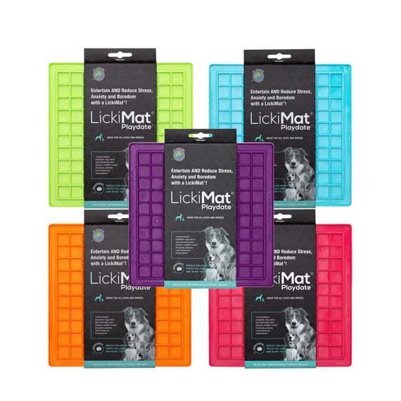 REDUCES ANXIETY, BOREDOM AND DESTRUCTIVE BEHAVIOUR LickiMat helps calm and soothe your pet as they enjoy their favourite treat by helping release endorphins through the promotion of licking. Great for when you leave home, great for stressful times such vet visits, injections, bath time, nail clipping, injury recovery as well as thunderstorms and fireworks. Please remember to supervise your pet when first introducing them to LickiMat.