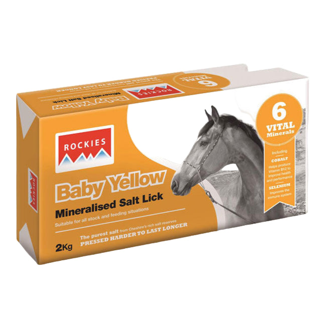 Baby Yellow Rockies are mineralised salt licks with six vital minerals including supplementary cobalt to help produce Vitamin B12, vital to health and performance; and selenium for immune system maintenance.