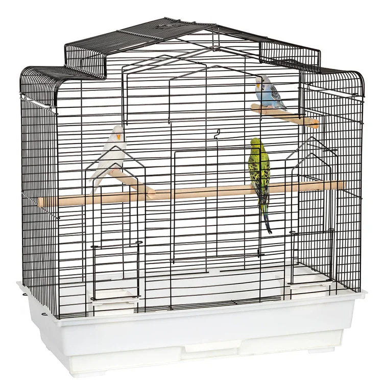 The Liberta Arizona Bird Cage is a classic bird cage boasting a quality build and a convenient design. It features an opening main door with unique landing platforms above, three wooden perches and two feeders that can be conveniently removed without opening the cage. The pull out tray at the base makes for quick and easy cleaning. The cage features a plastic base with coated wire construction, pull out cleaning tray, safety grill, one large door and two small doors.