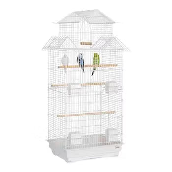 The Liberta Jintu cage is suitable for Finches, Budgies and other similar sized birds. The Jintu cage features an Apex roof design, plastic base with coated wire construction, pull out cleaning tray, safety grill and two large swing opening doors at the front set within which are two small doors. The Jintu cage includes four feeding bowls and four perches.